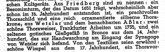 "Aus Friedberg sind zu nennen: ein Besomimturm, der das Datum 1651