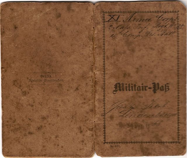 Soldbuch für Unteroffizier Emanuel Lindenbaum aus dem Ersten Weltkrieg