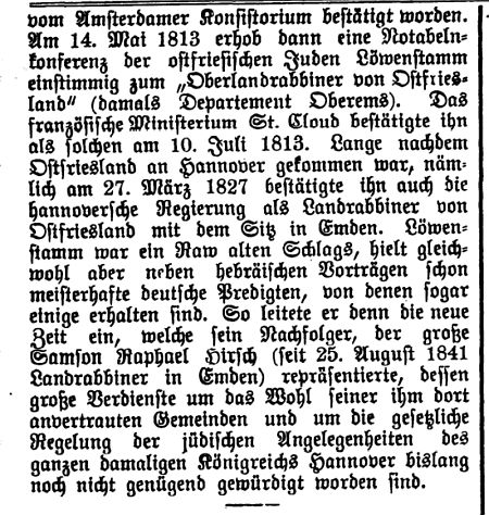 ostfriesische Landesrabbinat verwaltete. Er war Sohn des Landrabbiners Abraham