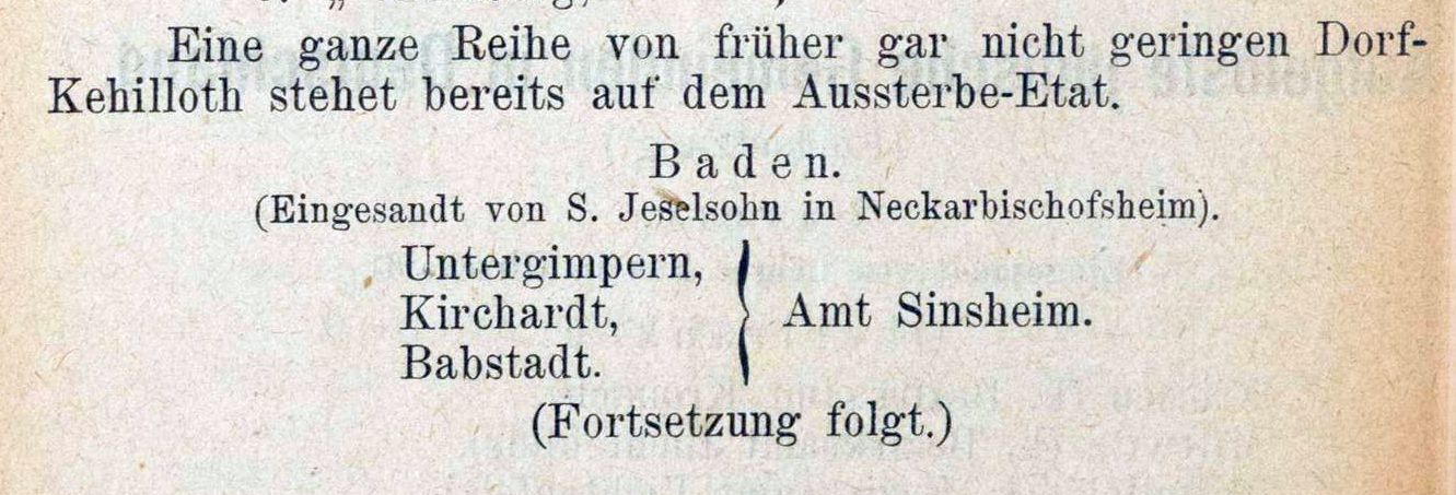 Baden - Amt Sinsheim (Eingesandt von S. Jeselsohn in