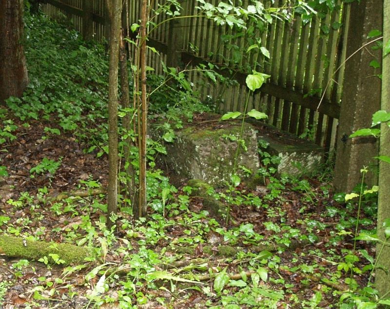 Auf dem Friedhof befindet sich ein Gedenkstein, links vom Eingang in der Mitte
