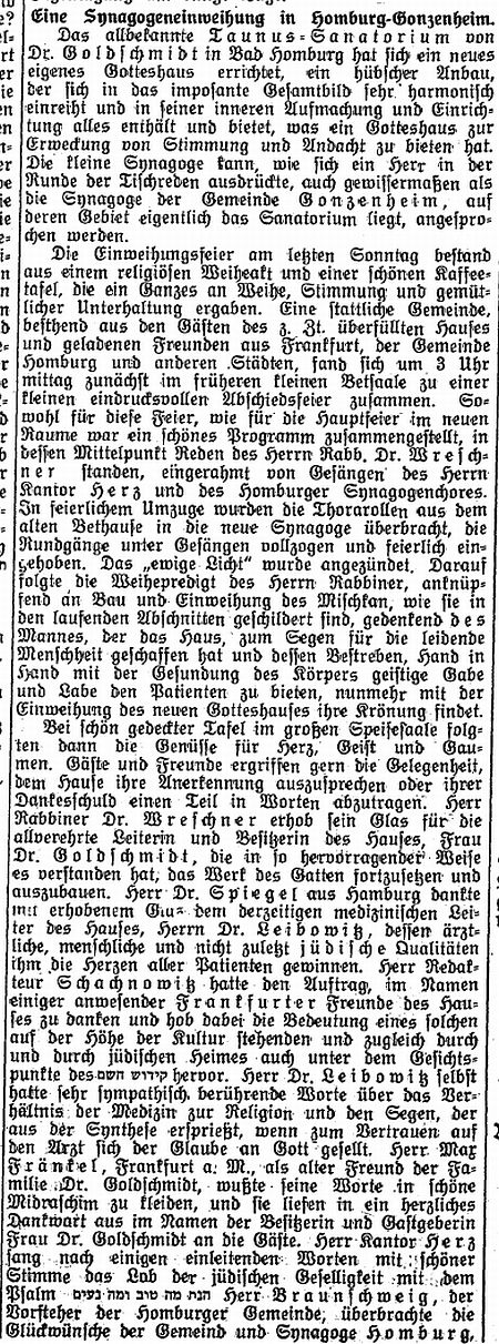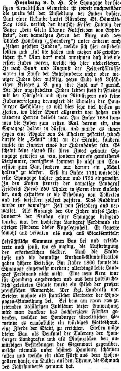 Homburg vor der Hoehe (1684). A synagogue was opened (1731) and a Hebrew