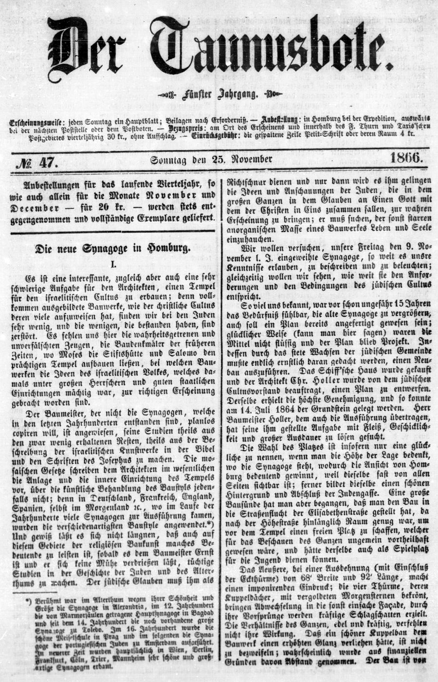 israelitische Gemeinde zu Homburg v.d.Höhe. Beilage zu Nr. 34 des