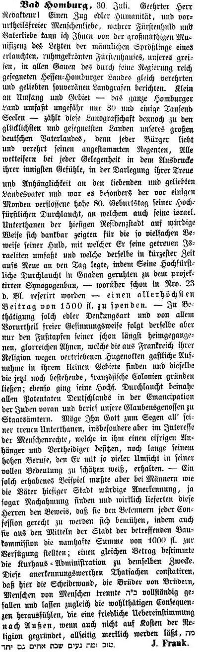 "Israelit" vom 24. August 1864 S. 457-459. |
