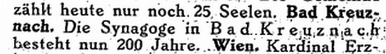 Bad Kreuznach war Sitz eines Rabbiners (um 1800 wird Rabbiner Tewele Berlinger