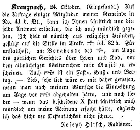 Rabbiner Joseph Hirsch (Rabbiner in Kreuznach von