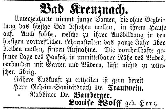 Bamberger. Louise Wolff geb. Herz." |