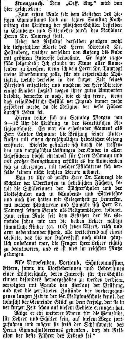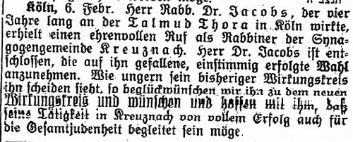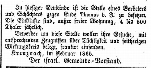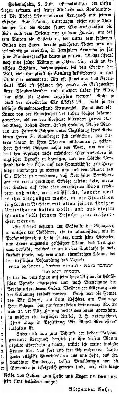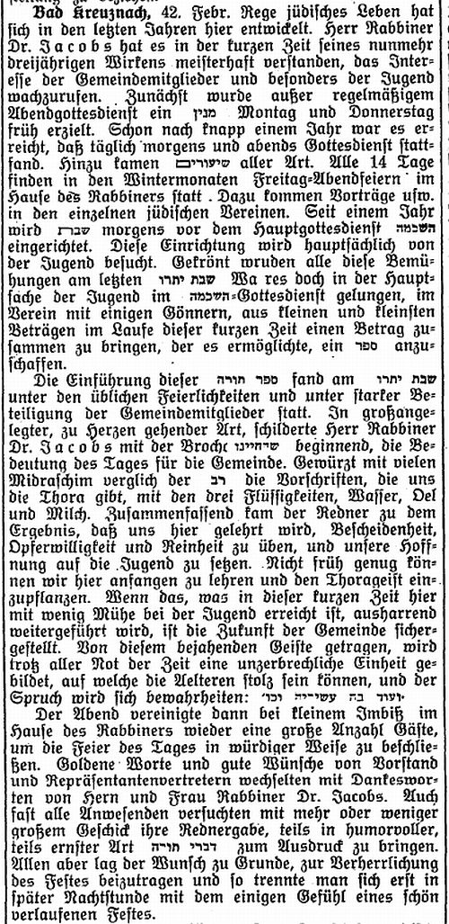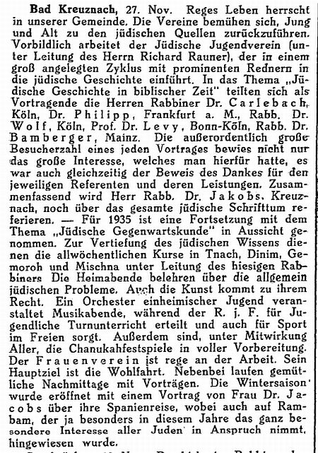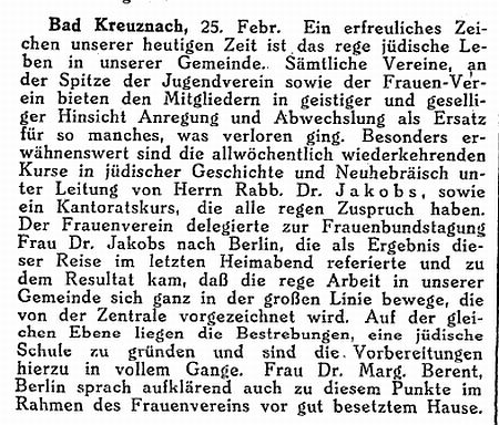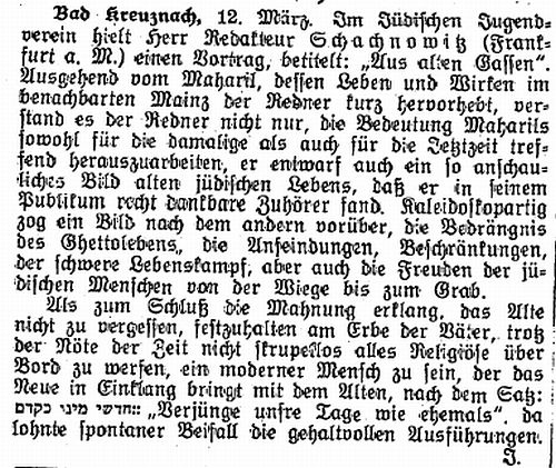 Beiträgen zur jüdischen Geschichte in Bad Kreuznach wurden in jüdischen Periodika