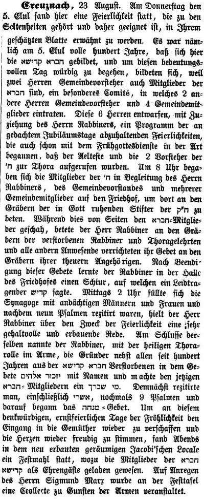 in der Zeitschrift "Der Israelit" vom 13. August 1900: