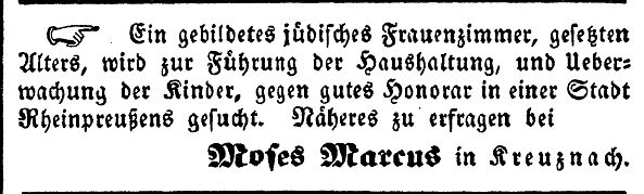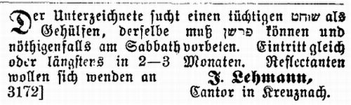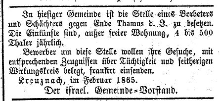 zu mäßigen Preisen erhalten. Referenzen erteilt Herr Rabbiner Dr.