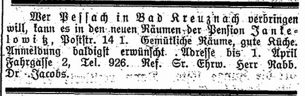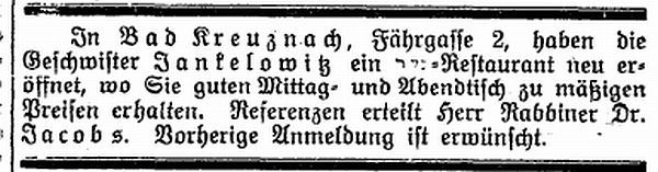 "In Bad Kreuznach, Fährgasse 2, haben die Geschwister Jankelowitz
