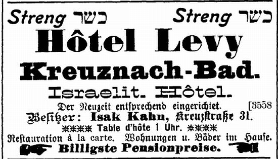 Anzeige des Hotels Levy, inzwischen im Besitz von Isak Kahn (1900)