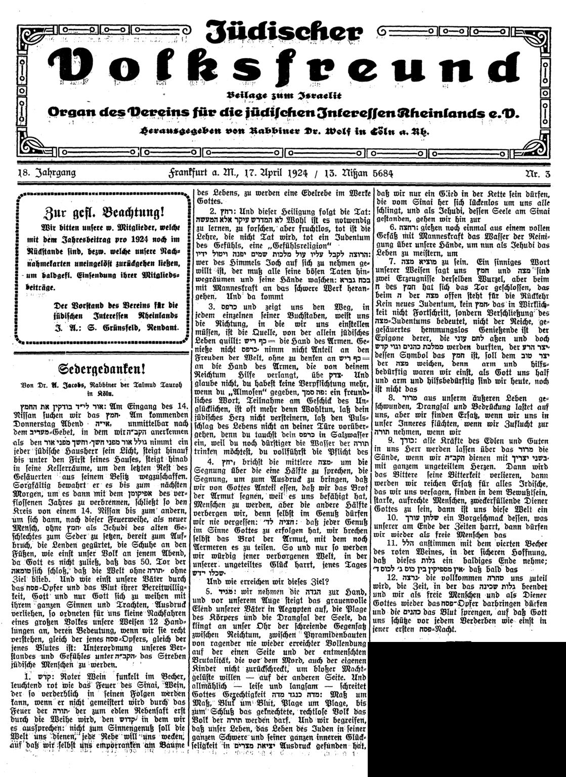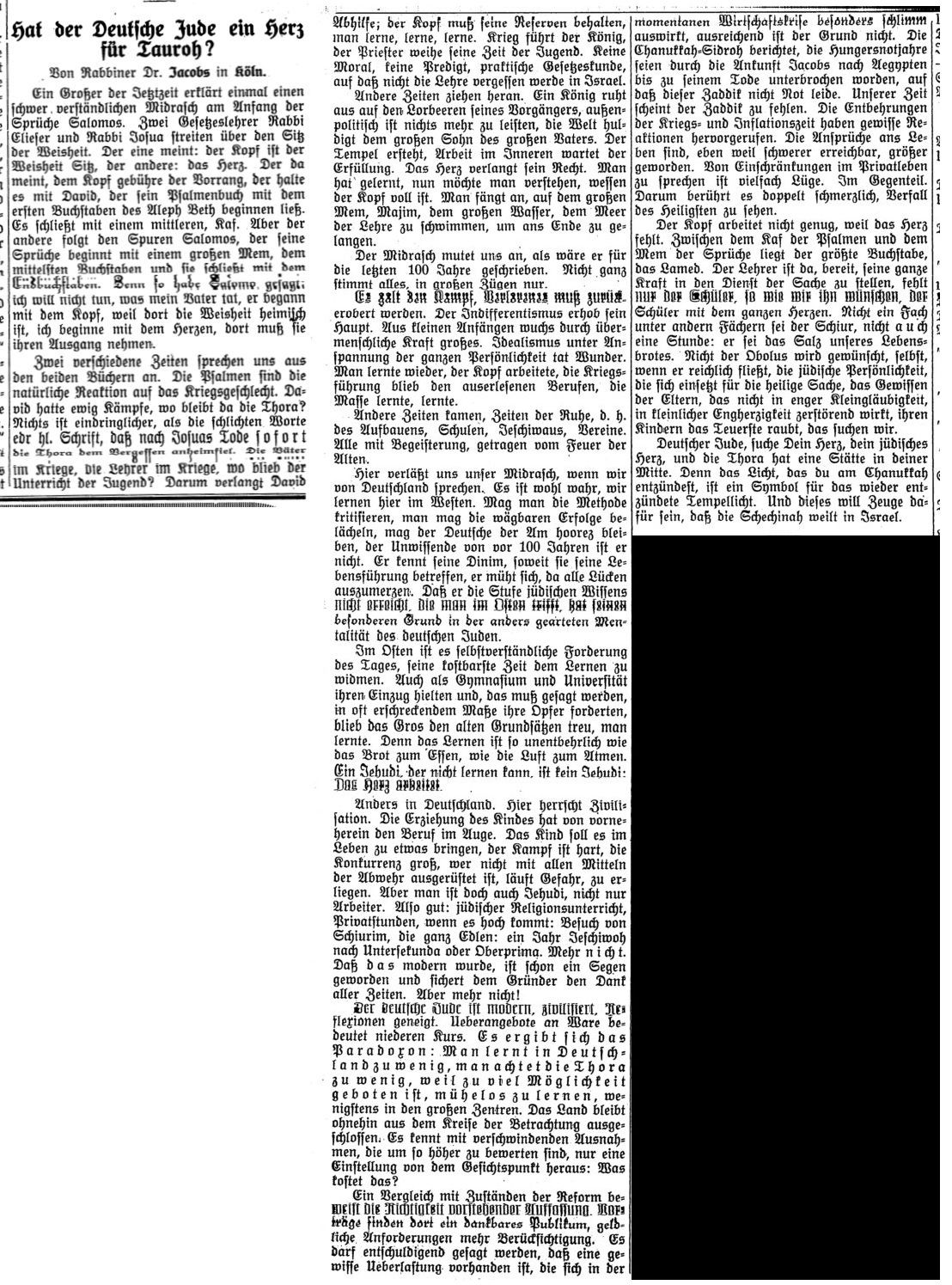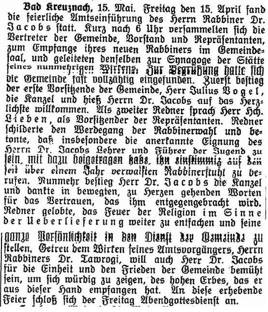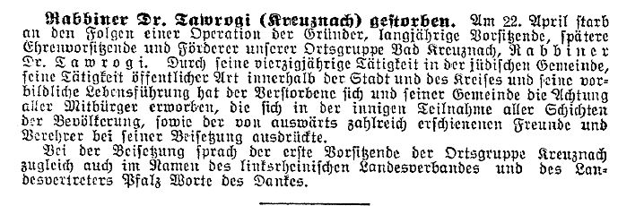 im "Israelitischen Familienblatt" vom 22. Mai 1924: