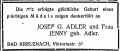 zeigen dankerfüllt an Josef G. Adler und Frau Jenny geb. Adler. Bad