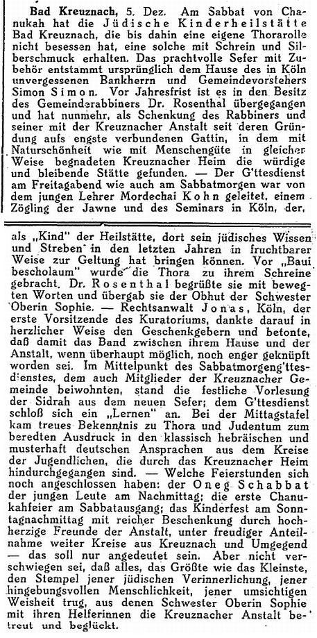 in der Zeitschrift "Der Israelit" vom 15. November 1928: