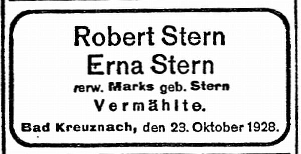 von Robert Stern und Erna verwitwete Marks geb. Stern (1928)