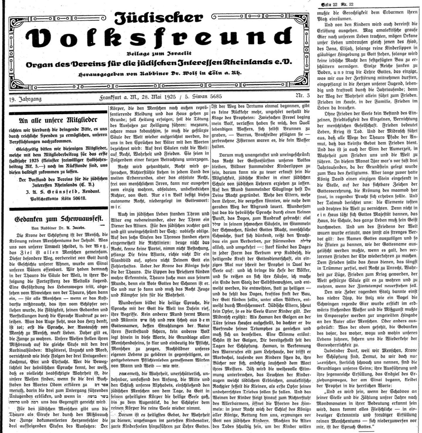 in der Zeitschrift "Der Israelit" vom 26. Mai 1921: "Die - mit
