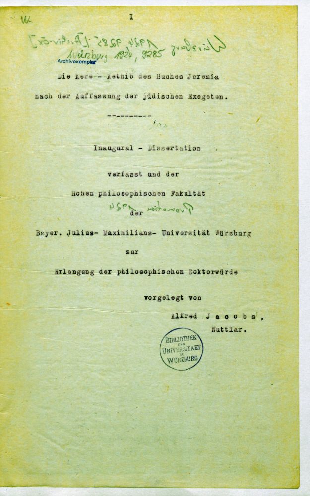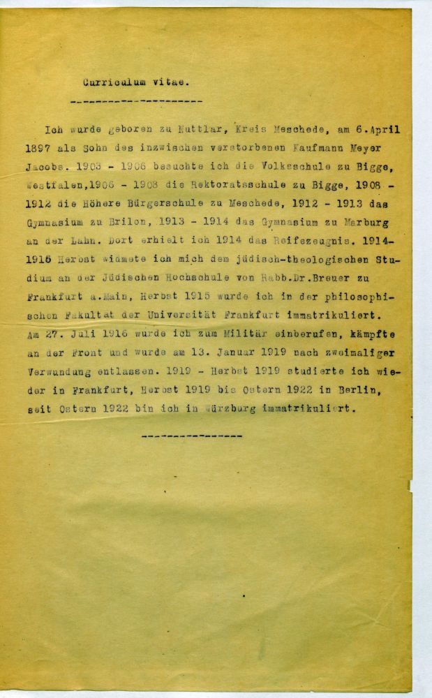 926. Ref. Seiner Ehrwürdigen Herr Rabbiner Dr. Jacobs." |