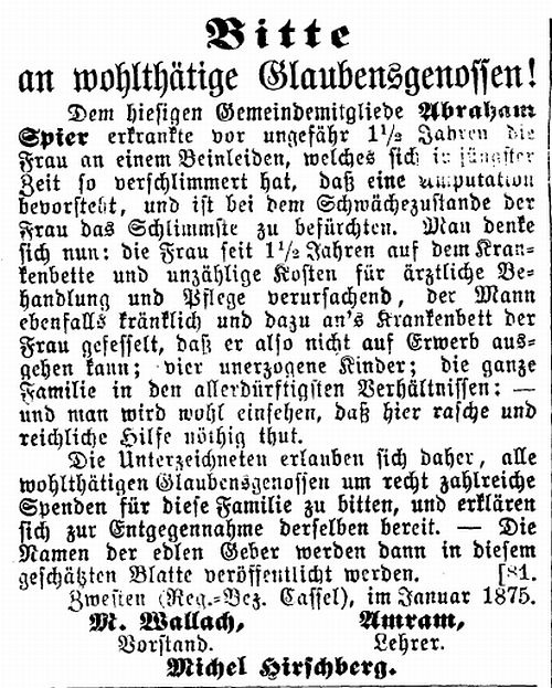 Hesse-Nassau. The community dedicated a synagogue in 1741 (rebuilt in 1914) and