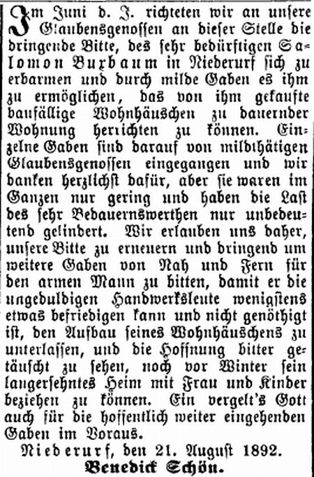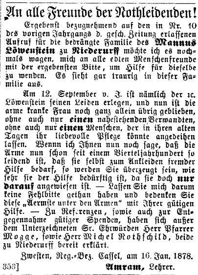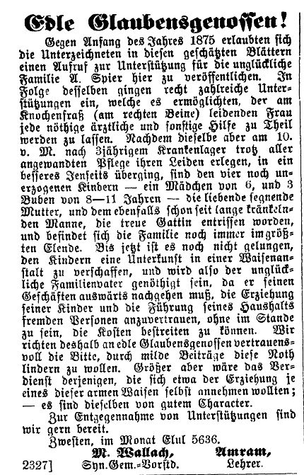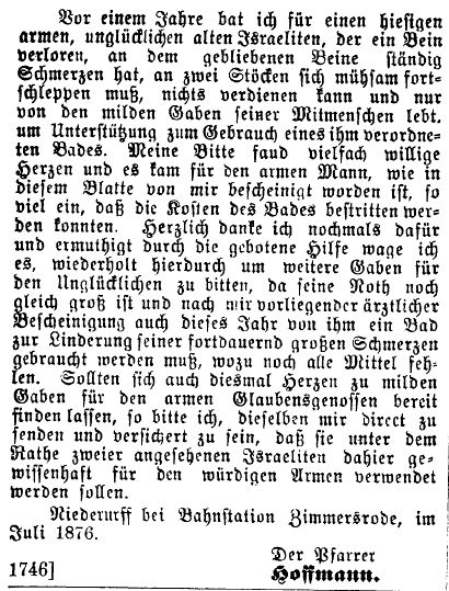 Spendenaufrufe für verarmte Gemeindeglieder aus den Jahren 1875-78 (siehe