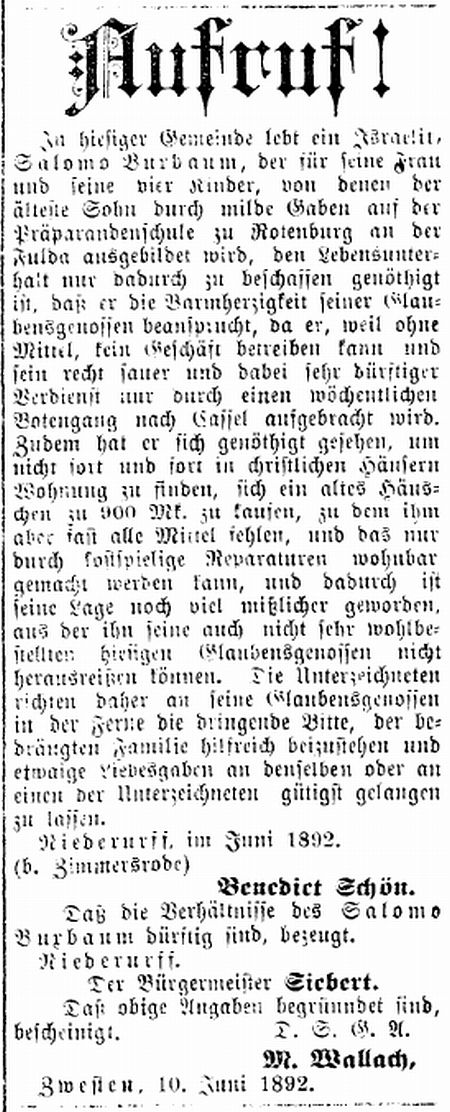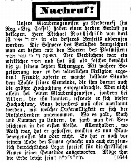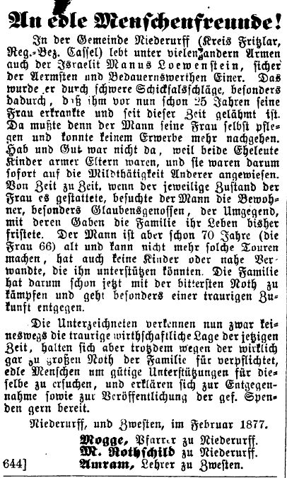 gehörten zur Gemeinde in Zwesten: Niederurff (1835 76 jüdische