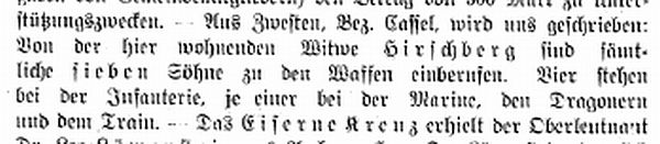 Im Ersten Weltkrieg fielen aus der jüdischen Gemeinde: aus Zwesten