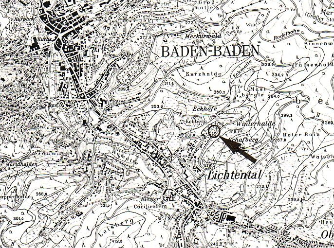 Lage des jüdischen Friedhofes Baden-Baden (durch
