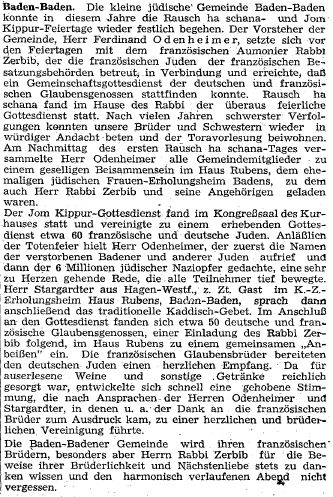 "Baden-Baden. Die kleine jüdische Gemeinde Baden-Baden konnte in diesem