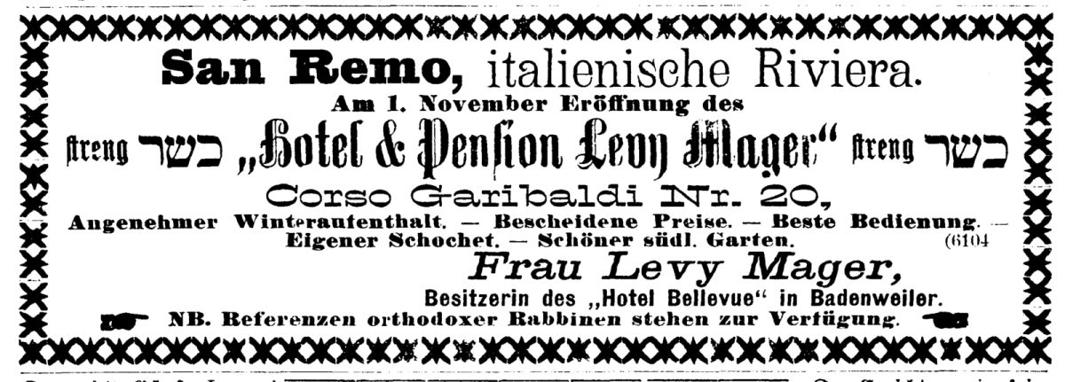 Dreyfuß; um 1900 wird als Referenz für das Hotel Rabbiner Josef A. Buttenwieser