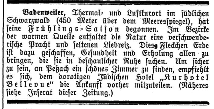 Schochet (Schächter) angestellt. Viel jüdische Prominenz kam nach Badenweiler,