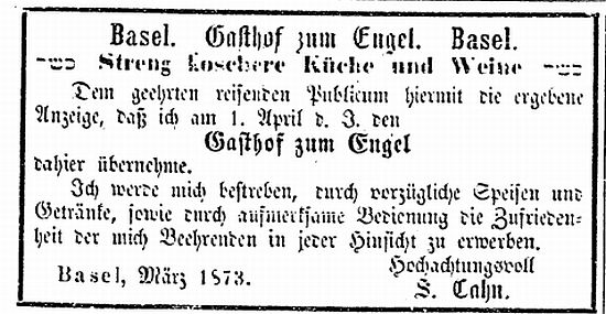 Anzeige des koscheren Gasthofes zum Engel