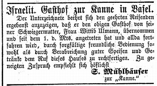 Anzeige des Israelitischen Gasthofes zur Kanne