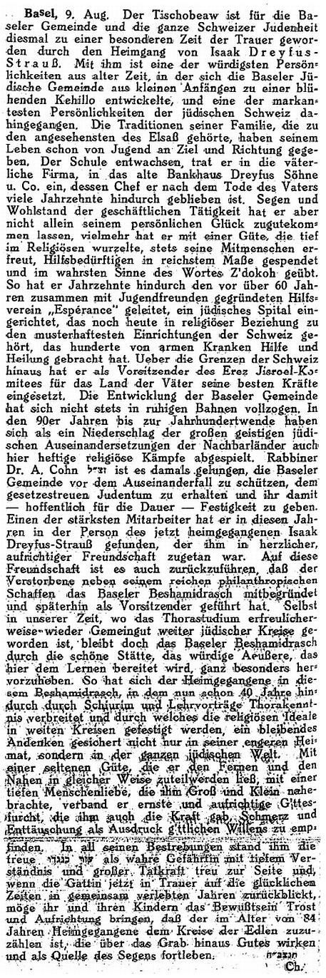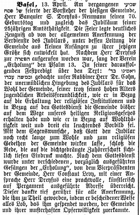 selig und Mitinhaber der Firma Isaak Dreyfus Söhne in Basel, wurde als