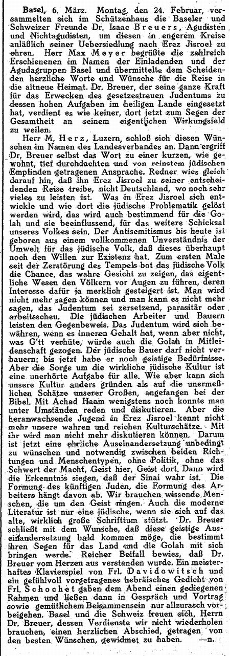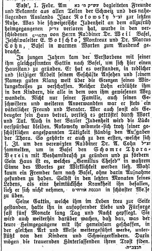 Beiträgen zur jüdischen Geschichte in Basel wurden in jüdischen Periodika