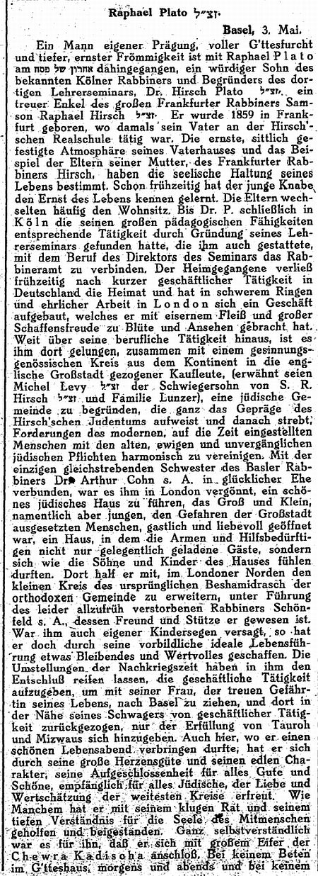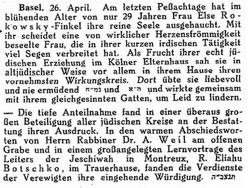 in der Zeitschrift "Der Israelit" vom 11. April
