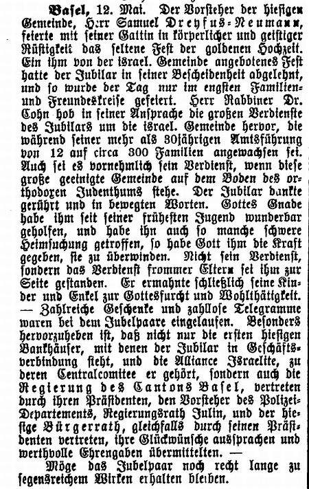 Dreyfus (1786-1845, seit 1812 in Basel) und der Judith geb. Bernheim.