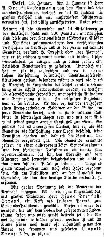 in der Zeitschrift "Der Israelit" vom 22. Januar