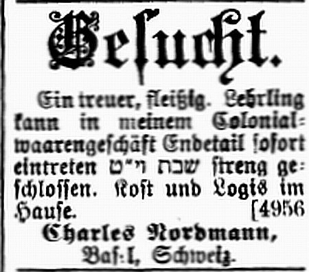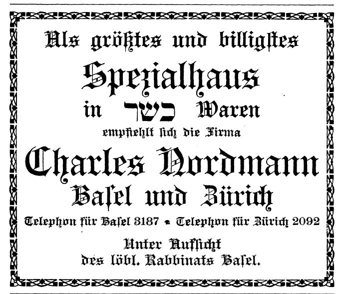des "Spezialhauses in koscheren Waren" Firma Charles Nordmann