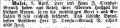 Trauungsanzeige für Minni Nussbaum und Nathi Samuel