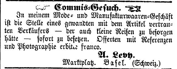 des Mode- und Manufakturwarengeschäftes A. Levy (1869)