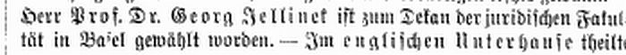 1885: "Basel, 16. Januar (1885). Die auch in weitern Kreisen