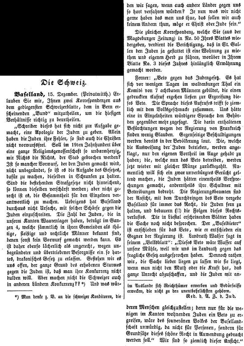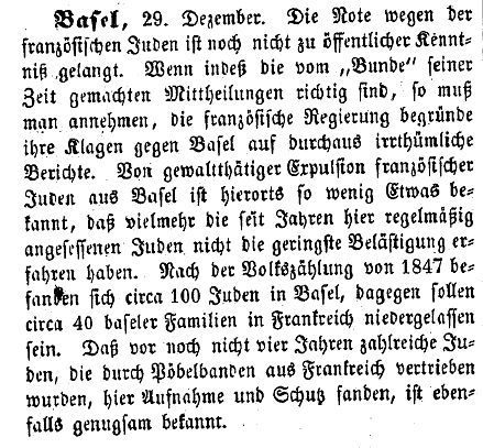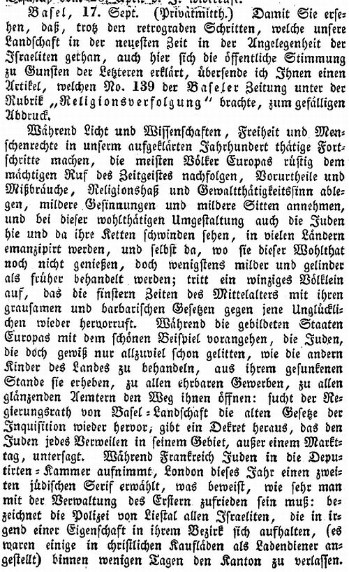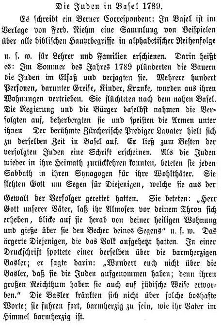 - Berichte zum jüdischen Leben in Basel-Stadt und -Land vom Ende des 18.