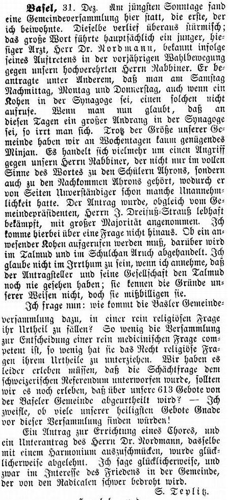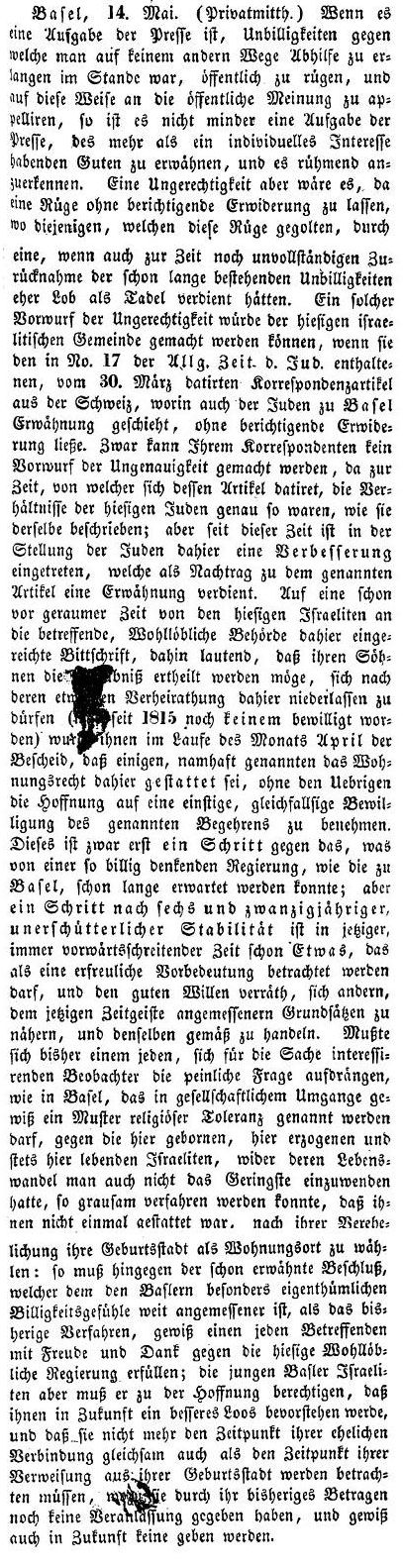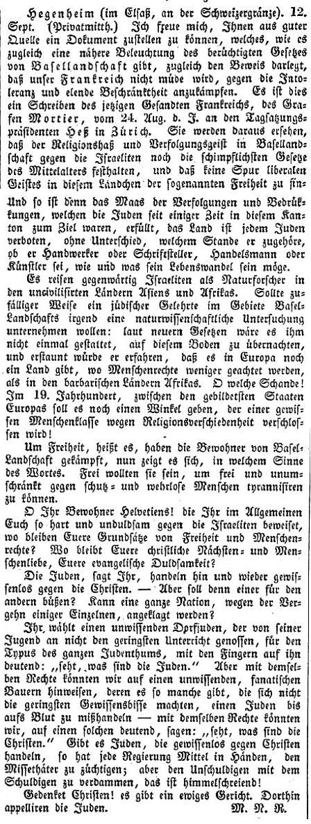 deutsch:) der Rabbinatssitz von Basel sein, wenn ihn wirklich, wenn