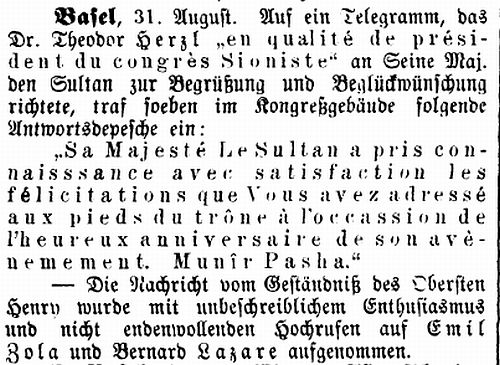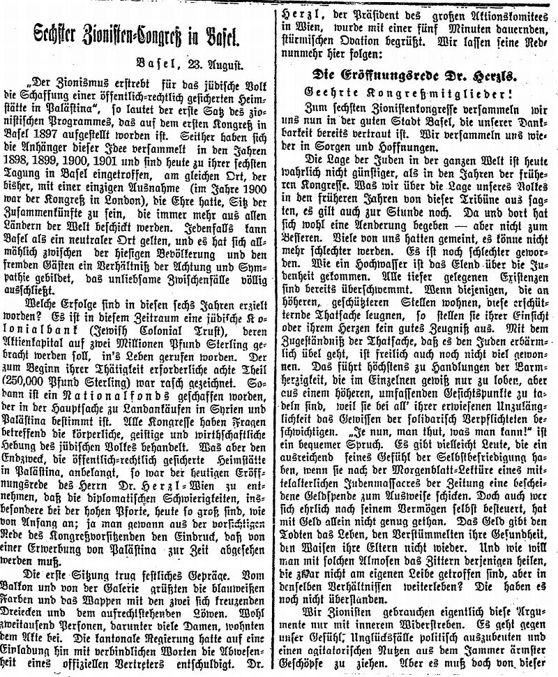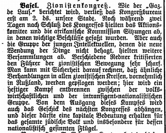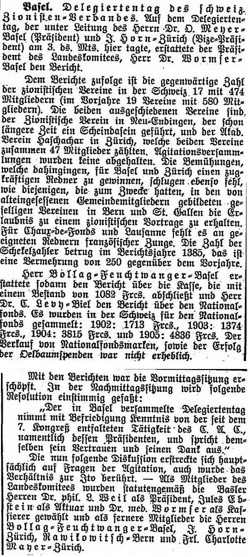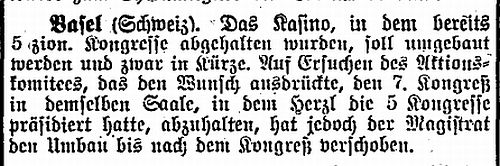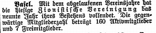 Über die Zionistische Vereinigung in Basel
