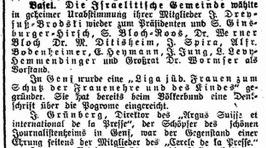 im "Frankfurter Jüdischen Familienblatt" vom 5. März 1920: