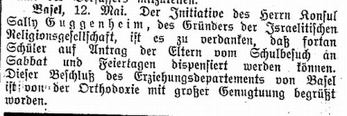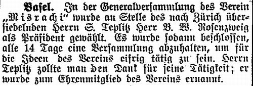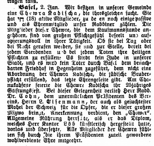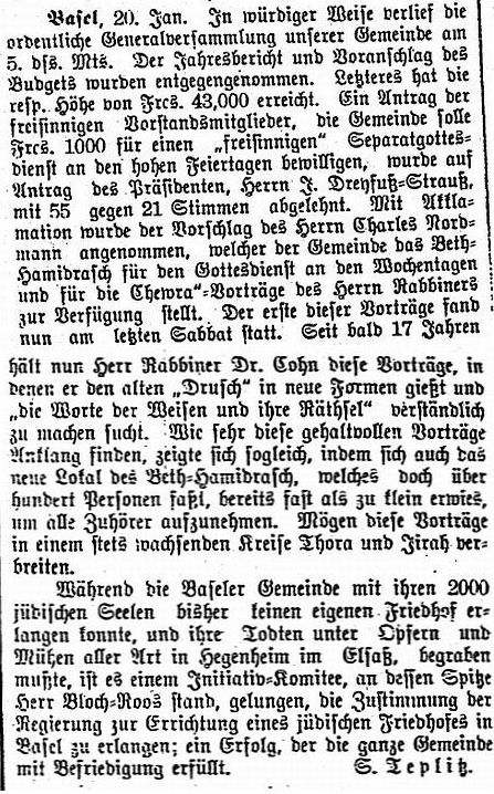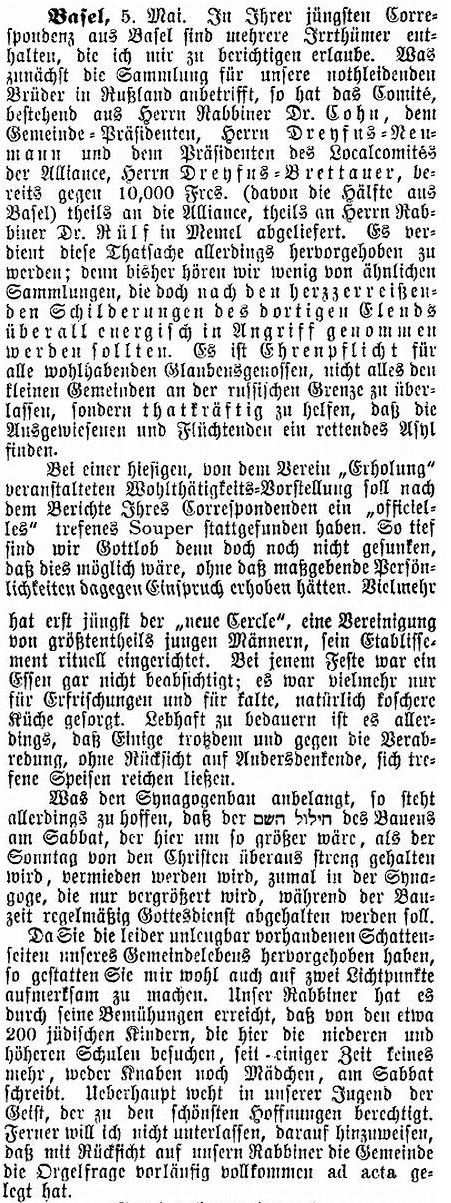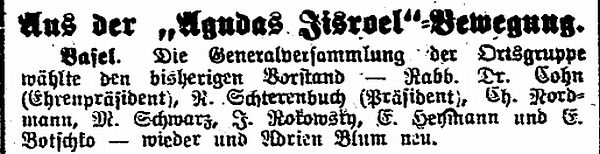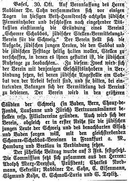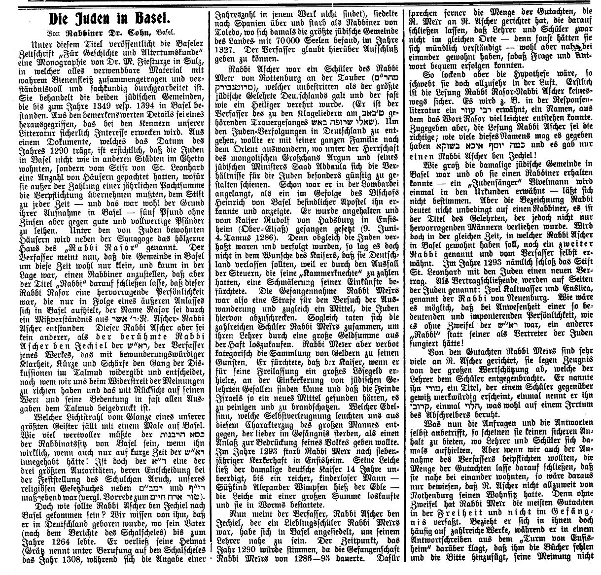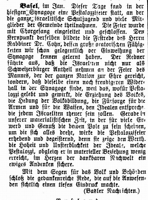 1909: "Die Juden in Basel. Von Rabbiner Dr. Cohn,