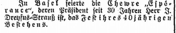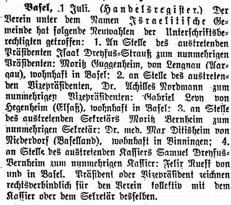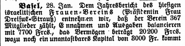 Zentrale für Zuschriften: J. Dreyfuss-Strauss, Basel, Präsident des