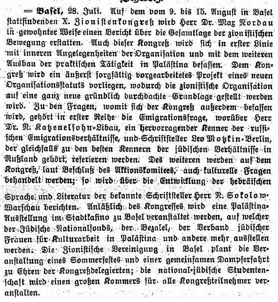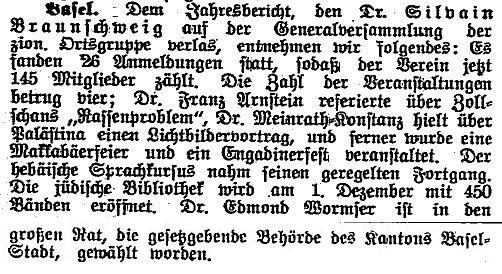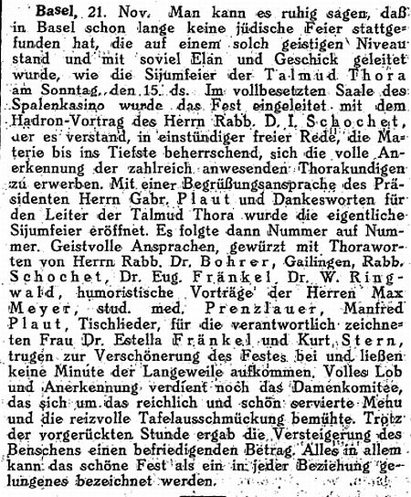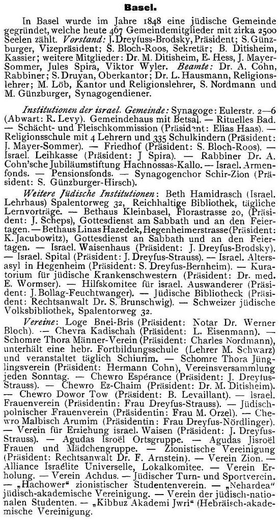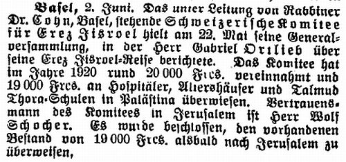 1921: "Basel, 2. Juni (1921). Das unter Leitung von Rabbiner