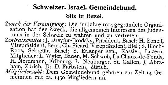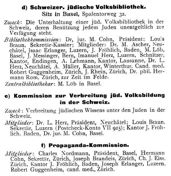 Darstellungen aus dem "Jüdischen Jahrbuch für die Schweiz"); daher