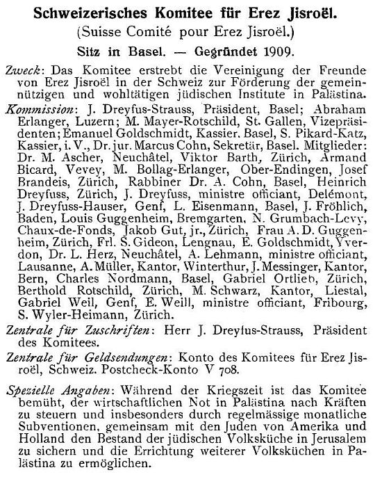 "Schweizerisches Comité für Erez Jsroel.